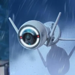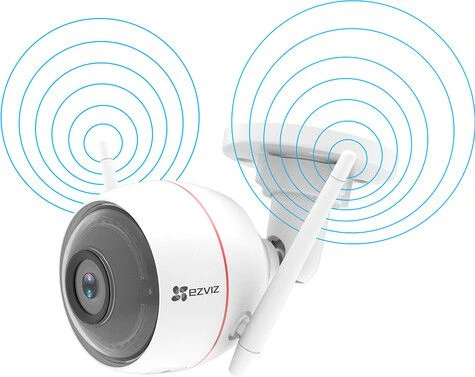 De EZVIZ Husky Air is een Full HD buitencamera die door de 2 WiFi-antennes een stabiele verbinding heeft met je netwerk. De camera is simpel te installeren via de app en bevat een ingebouwde microfoon en luidspreker. Dit zorgt dat je zowel kunt horen wat er gebeurt, als praten tegen bijvoorbeeld de post bezorger die voor deur staat. Ook is de camera uitgerust met een flitslicht en een alarm om ongewenste bezoekers af te schrikken.