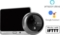 De EZVIZ DP1 vervangt je traditionele deurspion door een slimme deurbel met beeldscherm. De slimme deurbel wordt geleverd met een beeldscherm dat op de binnenzijde van de deur wordt geplaatst. Als een bezoeker aanbelt gaat het beeldscherm automatisch aan zodat je direct kunt zien wie er aan de andere kant van de deur staat. Verbind de EZVIZ DP1 met je smartphone om direct een pushmelding te ontvangen wanneer er wordt aangebeld . De EZVIZ DP1 is compatibel met Google Assistent en Amazon Alexa.