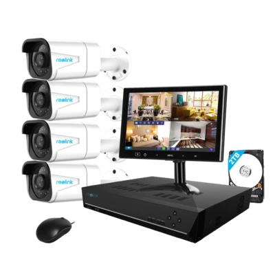 Ben je op zoek naar een compleet camerasysteem voor jouw huis of bedrijf, met echt ultra-ultra-ultra scherp beeld? Zoek niet verder, het Reolink RLK8-800B4-M PoE 8MP Camerasysteem is precies wat je nodig hebt. De vier camera’s in dit systeem voorzien jou namelijk van een uitzonderlijk hoge beeldkwaliteit van maar liefst 4K Ultra HD (8MP, 3840×2160). Zo mis jij geen enkel detail, in beeld en geluid, want de camera’s zijn ook nog eens uitgerust met bewegingsdetectie, infraroodlampjes voor haarscherp nachtzicht en een microfoon. De camera’s kun je zowel binnen als buiten plaatsen. De stevige behuizing van de camera’s is IP66 gecertificeerd waterbestendig. De camera’s verbindt je met de meegeleverde UTP kabel met de NVR, die is voorzien van 2TB opslagruimte. Genoeg voor het bewaren van 2 maanden beeldmateriaal. Het beeldscherm en de muis sluit je aan op de NVR. Zo bekijk je jouw beeldmateriaal ook direct op locatie en kun je de NVR instellen, beheren en bedienen als een computer. De installatie is Plug & Play, dat wil zeggen: je hoeft er geen technische kennis voor in huis te hebben. En wil je het systeem uitbreiden? Geen probleem. Op de NVR kun je tot 4 extra Reolink camera’s toevoegen.