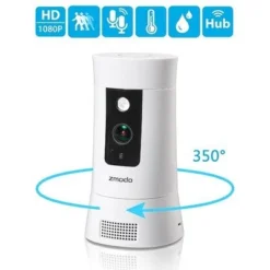 De Zmodo ZM-SD-H2002 is een IP-camera waarmee niet alleen gemakkelijk je huis in de gaten houdt, maar ook gelijk functioneert als alarmsysteem, bluetooth speaker en veel meer….. De camera wordt geleverd inclusief 4 deur/raam sensoren die zodra deze worden geactiveerd een signaal naar de camera versturen. De Pivot verstuurt een 360° foto zodra er beweging of geluid wordt gedetecteert naar je mobiel. De Pivot is bovendien voorzien van extra sensoren die je op de hoogte houden van de temperatuur en vochtigheidsgraad in je huis.